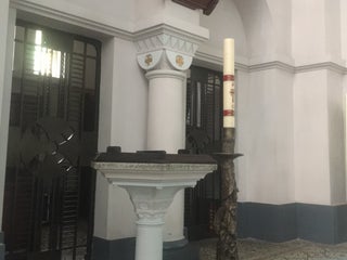 Khuôn viên rộng rãi nhưng hoạ tiết bên trong quá giản dị,0 cầu kì như nhà thờ lớn,từ bác quét rác đến bác bảo vệ đều rất thân thiện,vào đây có cảm giác yên bình dễ chịu
