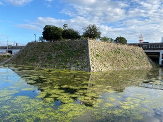 三原城址は三原駅と一体化していて、専用出口を出て直ぐにあります。緑が多くてとても静かな公園ですが、お堀と石垣をみると、やはりここは城址なんだな、と古を偲ぶことができます。
