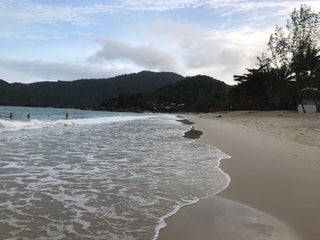 Красиво.....но есть нюансы....в виде речушки неочень чистой....вытекающей прямо в "бухту" и походу канализации с мрогочисленных бунгал .....идентифицировать это можно по мутному пенному пятну на воде