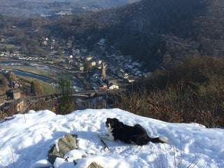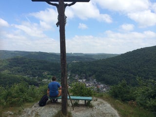 Since 1934, the cross is on top of the Roche La Dame (140m), a popular destination for hikers in the region. If you go up there and discover the amazing view over the valley, you'll understand why.