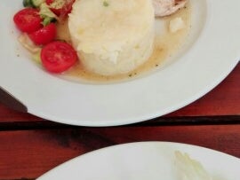 Přes počátečni mírné rozpaky bylo jidlo dobré a chutné. Grilovaná vepřová panenka na zelených fazolkách byla vynikající, tvarůžkové prkénko jako předrm bylo také výborné a řízečky byly klasika.