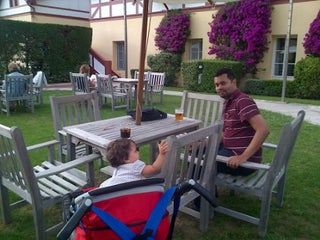 Buenos combinados y tarta de queso casera en el chiringuito junto al parque infantil