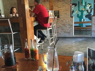 Solid Mexican food, coming from someone who lives on top of a taco shop in California. Really good iced latte and iced Thai tea. Owner from Boulder Colorado is really nice, roasts his own beans