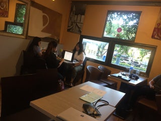 The wifi is super slow here. Decor is just fine, not very cool or special. Don't recommend for someone who needs to work with their laptop here.