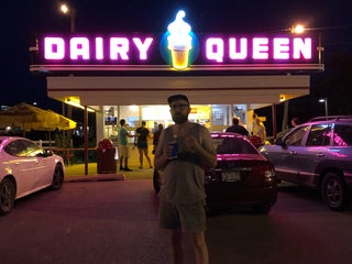 A tropical-themed McDonalds that is close to the Iowa City Airport and Adam's Apartment.