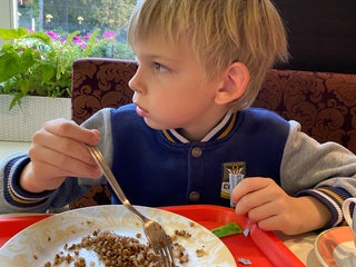 Theremok - tasty and cheap traditional Russian cusines fastfood (pancakes with different toppings, soups, salades, etc). Has special price deals (combos) called 'obed' (dinners).