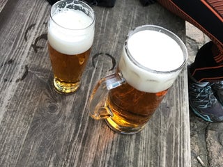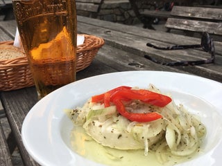 Měli jsme nakladené sýry a knedlíky s borůvkovým přelivem a obojí moc dobré, akorát sýr byl v hlubokém talíři plném oleje, což nemusí být pro každého. Za mě bych brala bez té tuny oleje.