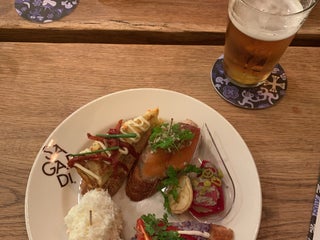 Start off with some pintxos downstairs (do NOT miss the chistorra) then head upstairs to the main event with some yummy steak and grilled fish. The beans were also a nice surprise.