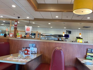 Would hate to sit by the window on a sunny day it's hot and looks more like a cafeteria then a Denny's but the food is still good waiters could use work remembering to bring refills
