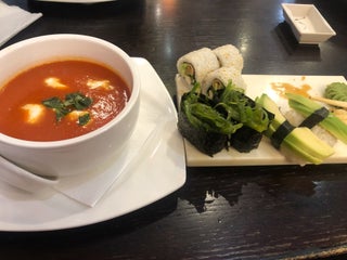 Нормальные роллы. Посредственный салат. Ужасные соусы к "Креветкам в темпуре", с соевым и то вкуснее. Нет просто черного или зел. чая за 170, ТОЛЬКО из Чайной карты за 500+. Прям не советую