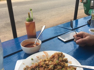 Rotti and noodles were ok and cheap. Portions are huge. But place is very strange. Full restaurant's family hang up here with naked baby. It's more like cultural museum than restaurant.