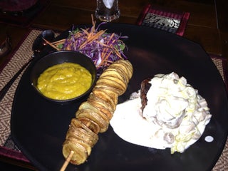 Poulet caramélisé Scampi tempera salade de bœuf thai et la bonne humeur du patron un très bon rapport qualité prix