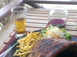 Super lecker u die Füße im Sand am Wasser....u toller lustiger Service