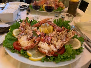 "Crab" salad has little to do with crab itself - just a hollow tomato filled with mayo and a couple of minuscule pieces of crab meat. Fish cataplana was not bad, quite generous in size.