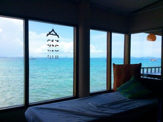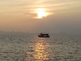 นั่งทานอาหารระหว่างรอเรือกลับฝั่งพัทยา;)