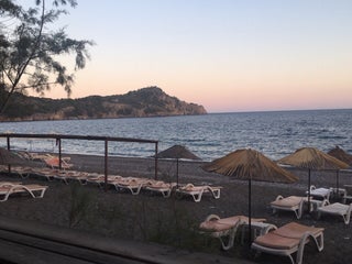 plaj çok kalabalık değil sakin.yeme içmeden yeterince yararlanırsanız otopark,şezlong,şemsiye,duş ve wc ücretsiz.Duşlar fena değil.Fiyatlar biraz tuzlu.Kabak çiçeği dolması denenebilir.Denizi temiz...