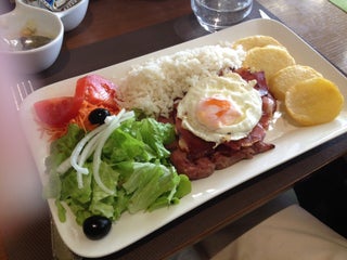 El bacalao bras, y el arroz tamboril están de muerte aquí.