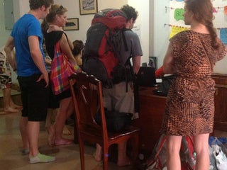 Group, cheap tuk tuk ride to Kuang Si Waterfall at 11:30 AM. Register at the reception