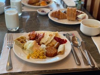 Breakfast is ok but room corridors, gym, some public areas smells like a public toilet because of cheap air freshener