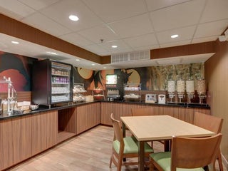My family has been staying at this hotel for years. We enjoy the complimentary hot and cold breakfast buffet. There is a small, outdoor pool in the back. There is also a guest laundry room.