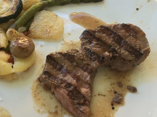 El solomillo un desastre, tras devolver 3 veces el plato traen esto . Todo agua. La guarnición fría temperatura nevera. Un desastre.