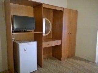 Esqueci do frigobar, split, porém cama pequena mesmo.
