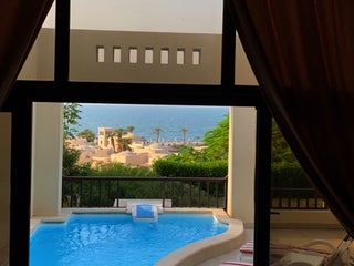Terrace is huge and offers view over the private hotel lagoon, the beach and the sea. The private pool is the best part of it and the water is cooled down as the sea water temperature is above 30 dgr