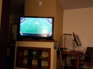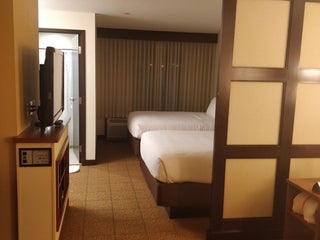 The room had everything. Couch to lounge with blanket and pretty pillows. King size bed. The staff was great. Had to go to convention center. Dropped me off and came and got me when I called. Nice!