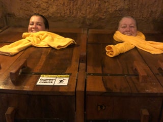 Bien lugar para masajes. Y pueden llevar agua termal local y lodos para hacer mascarillas en casa.