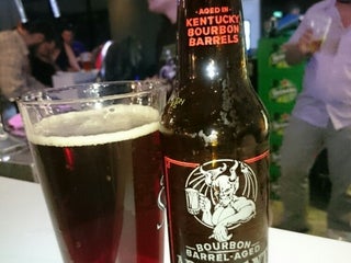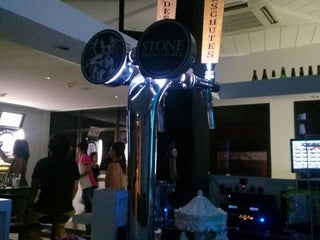 When I visited, 5 US craft beers on tap. $10/pint before 8pm. $12 after. Very, very basic venue. Good prices and selection.