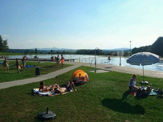 Paradni nove prirodni koupaliste s beach volejbalem, hristem pro deti, restauraci a vsim moznym....