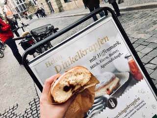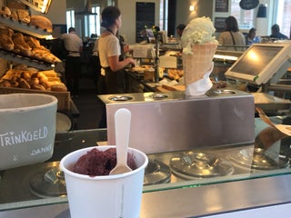 The ice cream served from the window is superb, the best in downtown! Not cheap (1.3 EUR/Kugel), but worth the money. Fruit sorbet + milky creams.