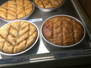 Δοκιμάστε μόνο γαλακτομπούρεκο και γαλακτομπούρεκο με φύλλο καταΐφι. Κοπεγχάγη, μπακλαβάδες κ καταΐφια είναι μέτρια άσε που μπορεί να τα πετύχετε μπαγιάτικα αν πάρετε με το κομμάτι