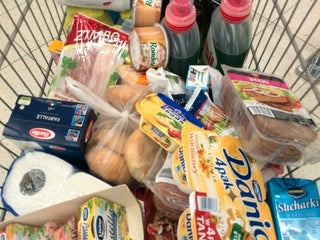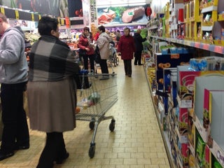 Various types of food , different department of the store. You can find everything, even clothes!