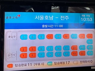 안동행 16,500원. 11번에서 탑승하면 됩니다. 화장실은 1번 쪽에 충분히 있음