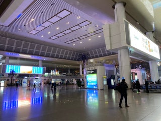 Ticketing counter halls are located on both side. Starbucks is available in both entrance after the security checkpoint.