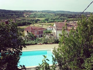 Situata a Višnjan (Visignano in italiano), la Villa Manovelova Hiza offre un giardino, una piscina all'aperto e la vista sul lago. 15 km da Parenzo.