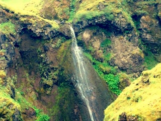 A unique waterfall in the river Seljalandsá, about 30 km west from Skógar. It is 60 meters high with a foot path behind it at the bottom of the cliff, but with a thin cascade. It is the only known waterfall of its kind, where it is possible to walk behind it.