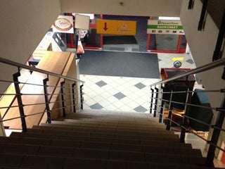 Сучасний торговий центр. Центр міста. Ескалатор. Одяг, взуття, сувеніри, хутро, шкіра, окуляри, парфумерія, ... Панорамне кафе на останньому поверсі.